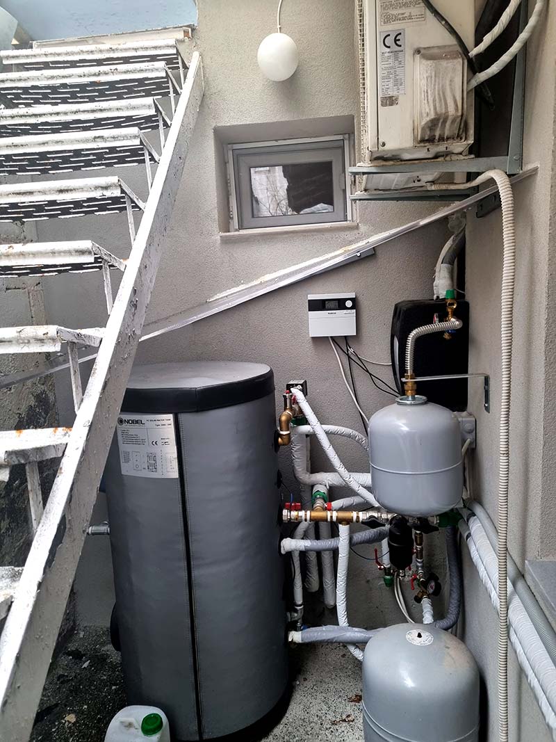 - l’installation d’un système de pompe à chaleur air-eau, la pose de radiateurs et l’installation de dispositifs de contrôle automatique du fonctionnement du système de chauffage